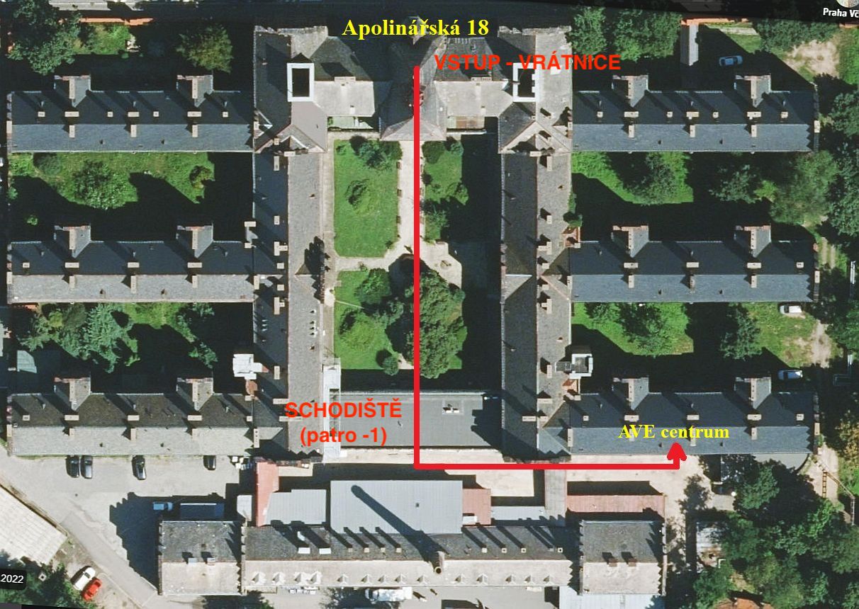 - AVE Centrum (nachází se v suterénu kliniky) – MAPU A INSTRUKCE NALEZNETE NÍŽE
